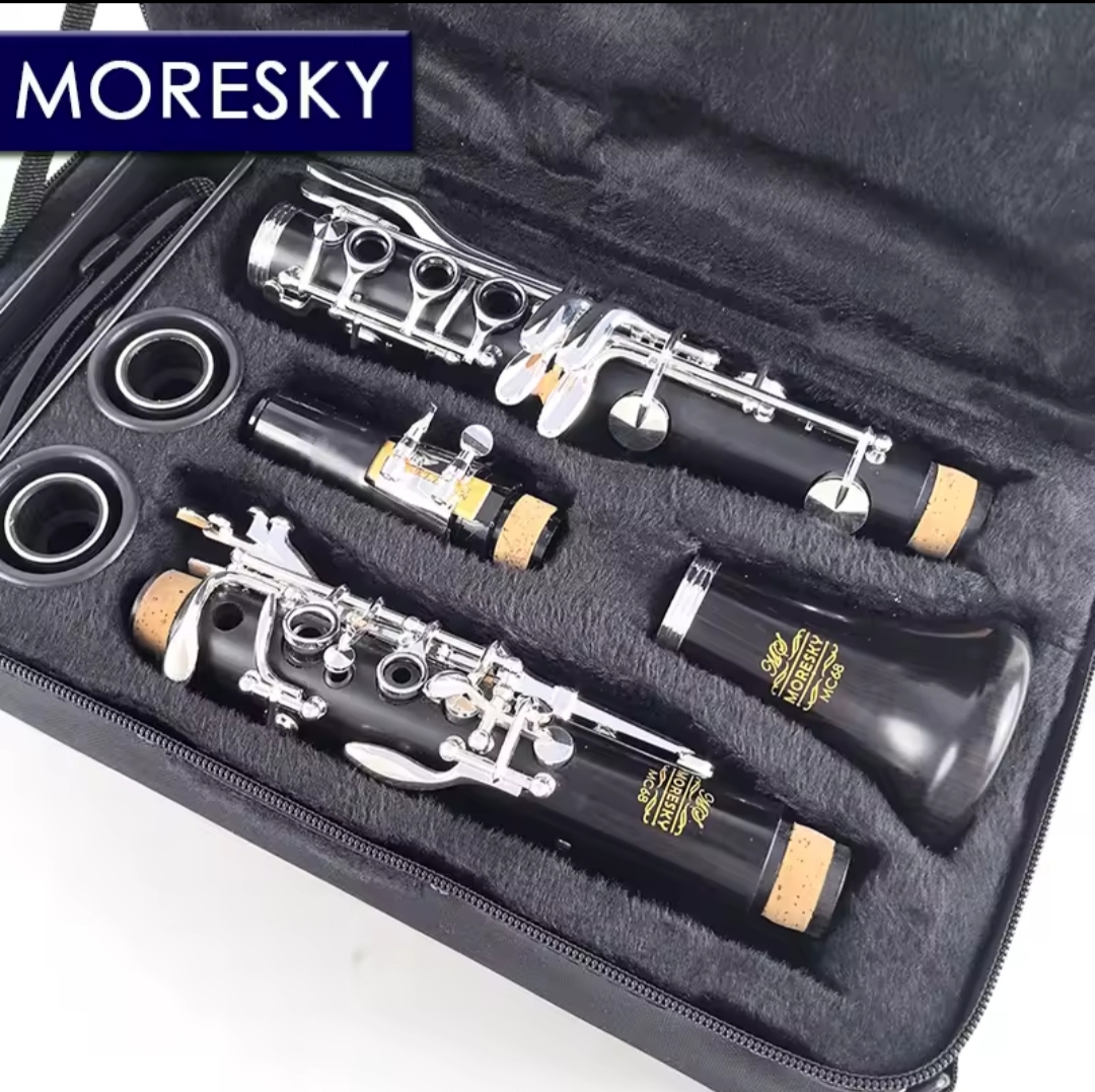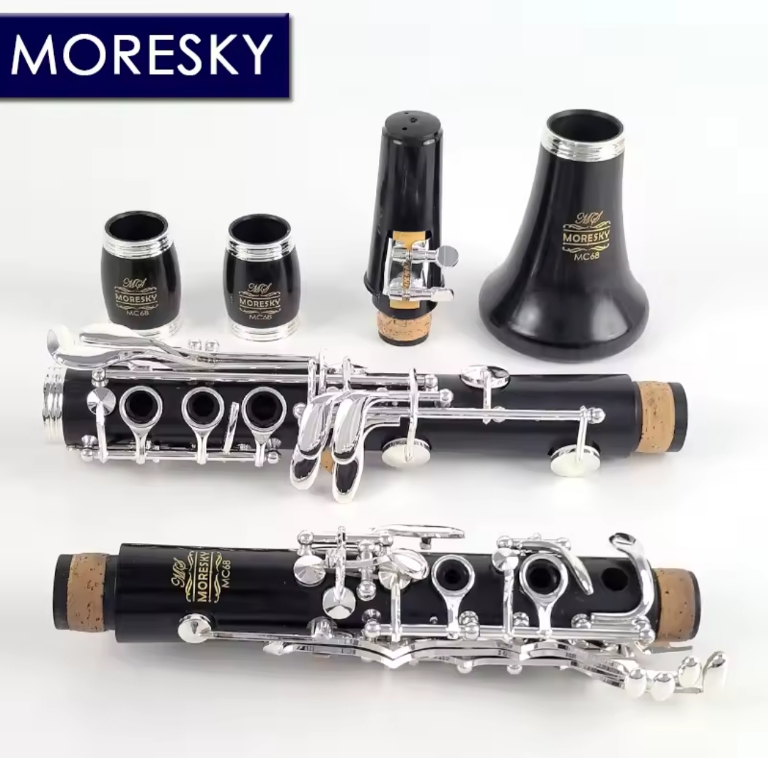 Clarinete profissional em madeira ébano modelo MC68, é um clarinete de nível estudante a intermediário, para músicos exigentes que buscam um instrumento com ótimo custo benefício. Ele é na tonalidade C podendo ter chaves banhadas a prata ou na cor dourada.