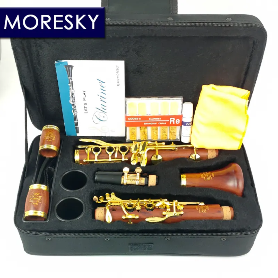 Clarinete em Dó madeira Jacarandá com Chaves Dourada.