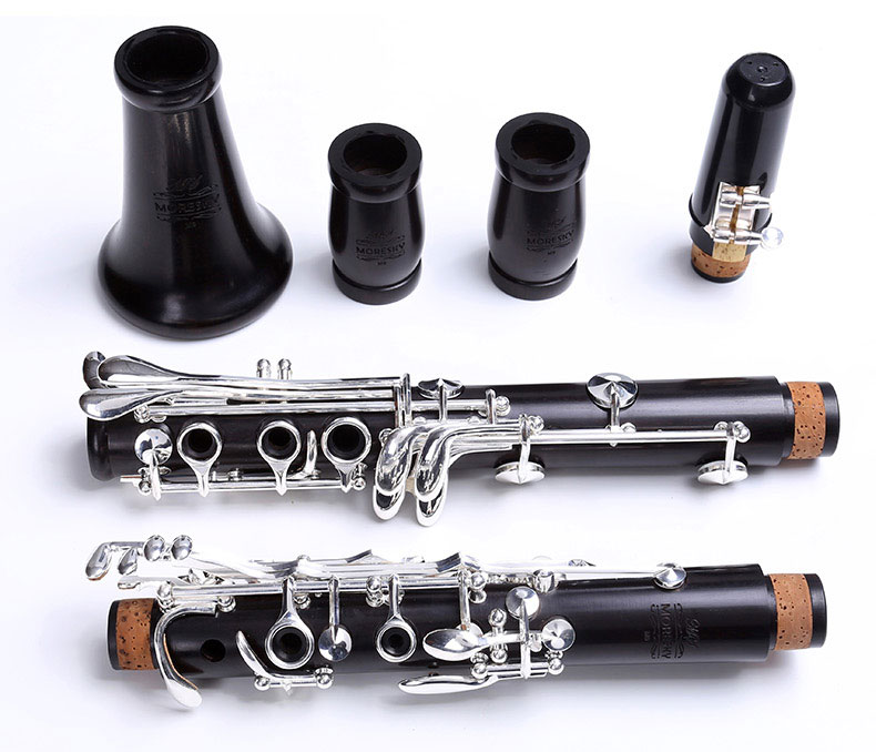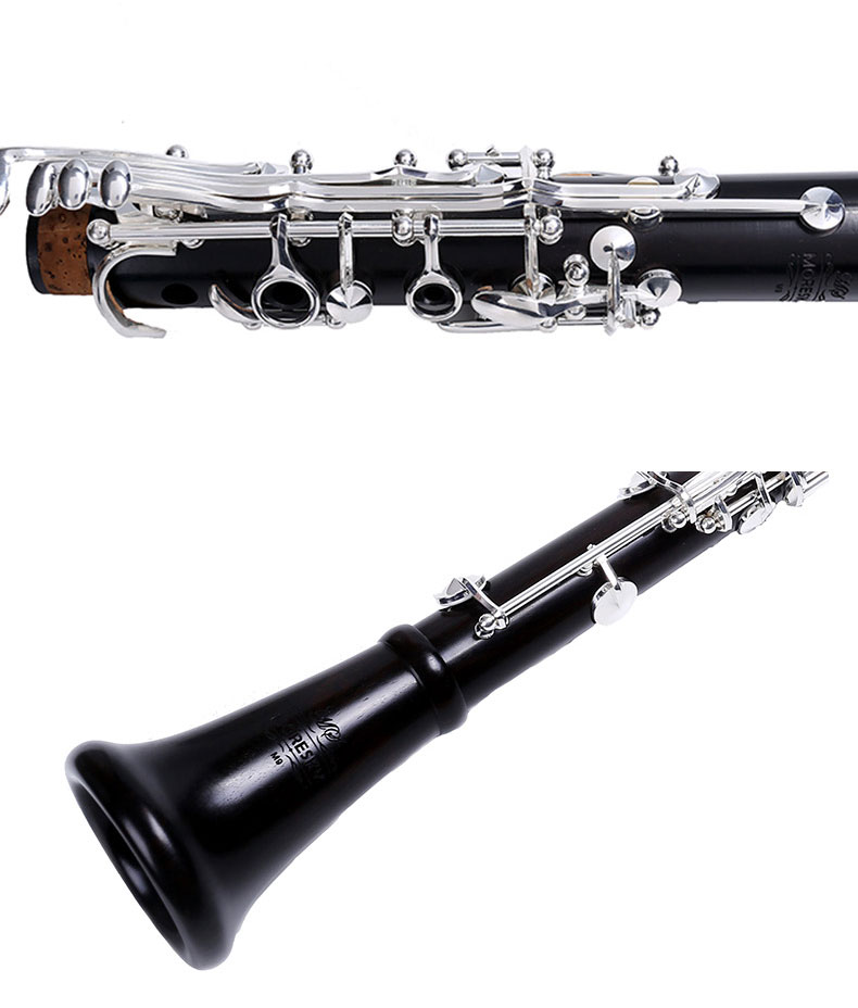 Clarinete em Madeira Ébano, Sib, com 17 chaves prateadas.