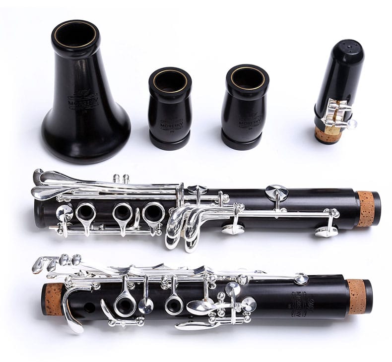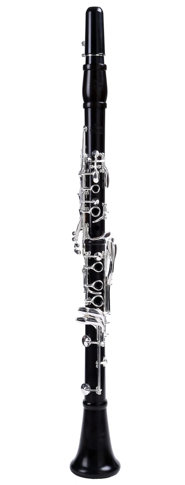 Clarinete Sib Grenadilla com 18 chaves banhadas à prata.