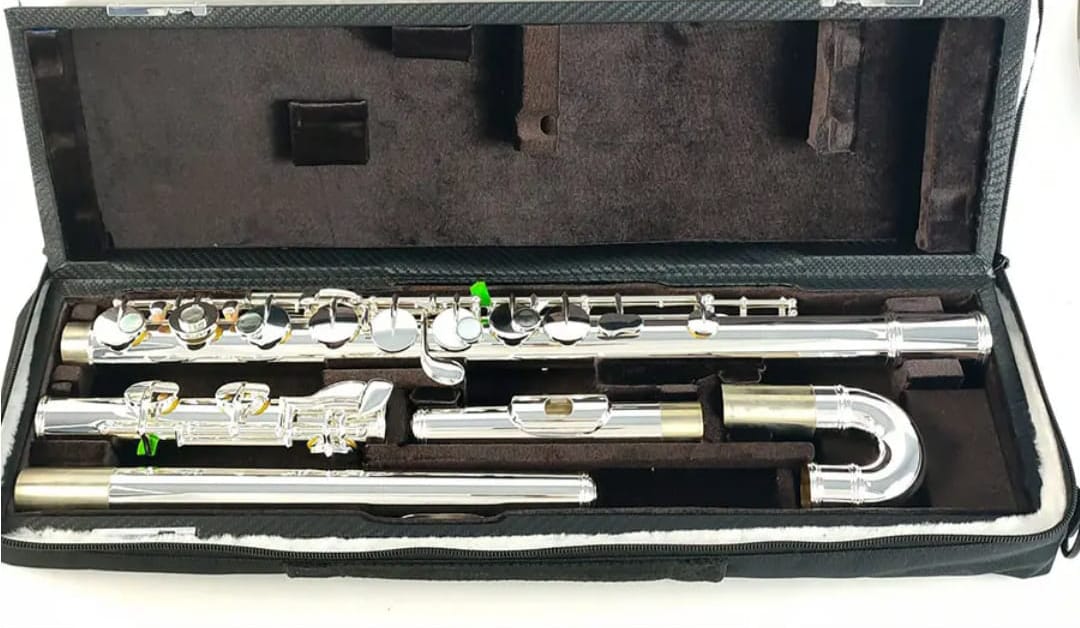 1. Flauta Contralto em Sol, prateada com 16 chaves.
